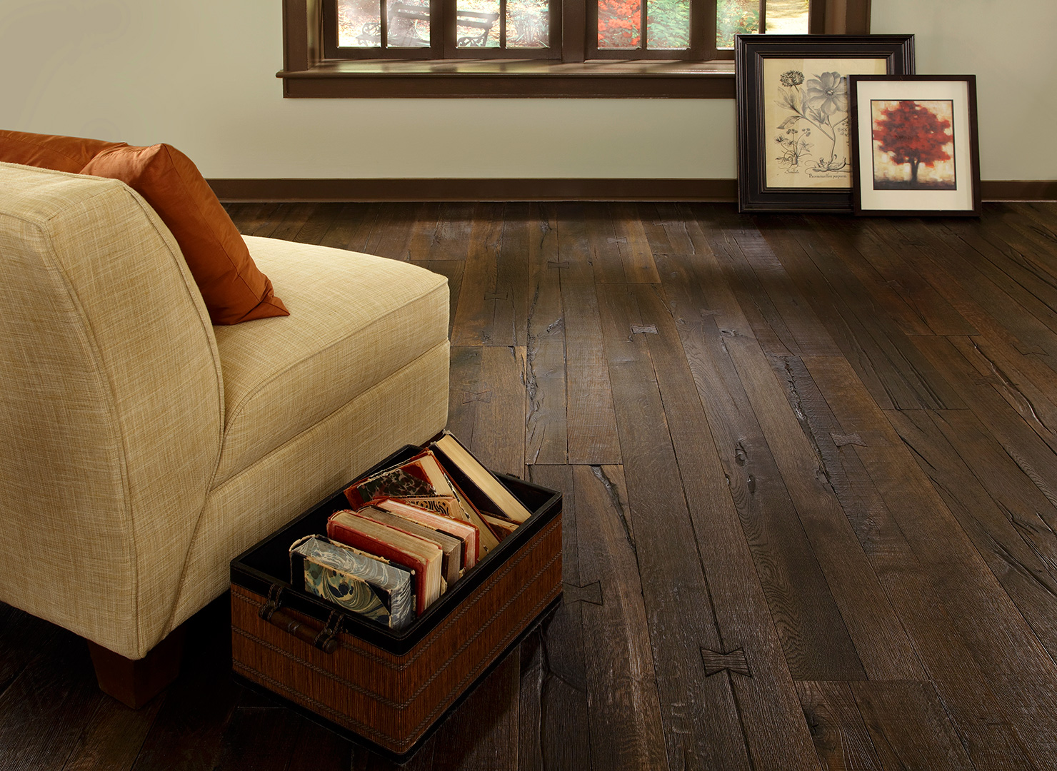 Natural oil finished Castle Combe Originals provide the look and feel of an ancient, reclaimed floor and combines it with the modern performance features of engineered floor. These inspiring, beautifully aged, handcrafted floors may be the most interesting, unique, head-turning floor covering and wall paneling you have seen in many years. State of the art Originals collection, aging techniques accentuate the natural character of the wood and the ancient appearance of each plank.